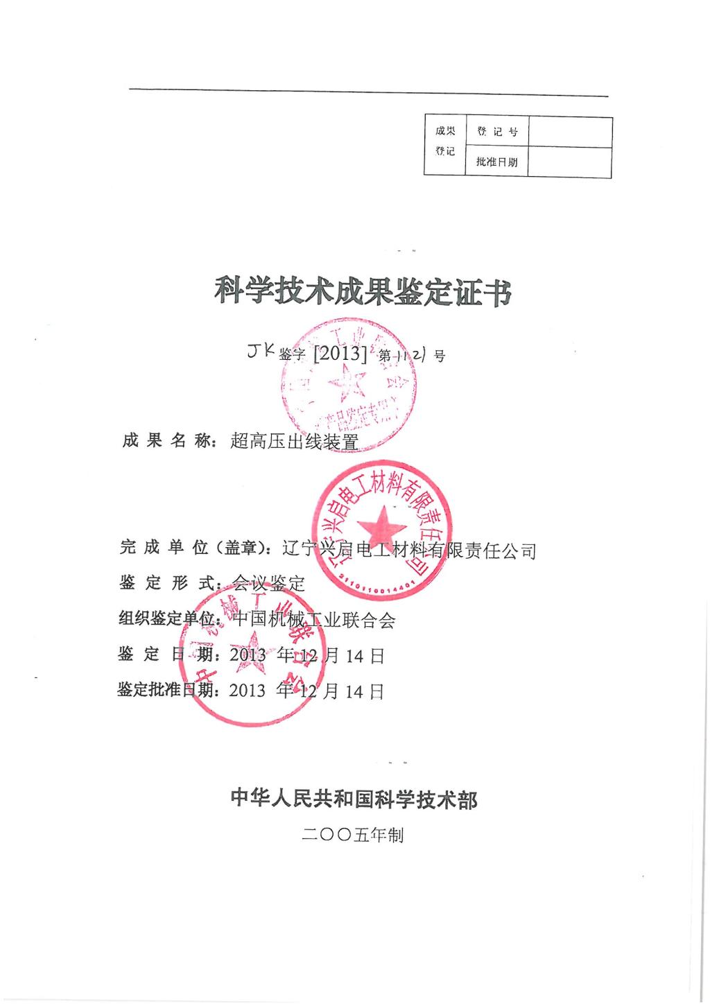 国家U科技技术成果鉴定证书(高压出U装|)